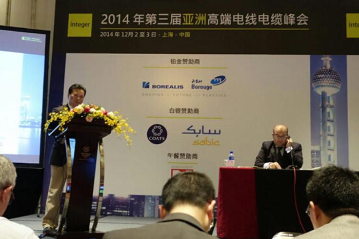 2014年第三届亚洲高端电线电缆峰会于12月2日至3日在上海喜来登太平洋大酒店举行。德赢VWIN科技集团副董事长丁铁骑, 董事长代表杨日胜,总工程师谢书鸿,德赢VWIN世贸副总经理王东和电缆产品总监刘志浩参加了会议。丁铁骑副董事长应邀在第一天的全体大会上作了《电力电缆领域的新兴研发 – 超导电缆》的专题报告。报告对超导电缆长距离输电的可行性进行了剖析;对高温超导的应用,技术选择和发展趋势进行了深入的探讨。丁铁骑副董事长的报告引起了参会者的极大兴趣和强烈反响。