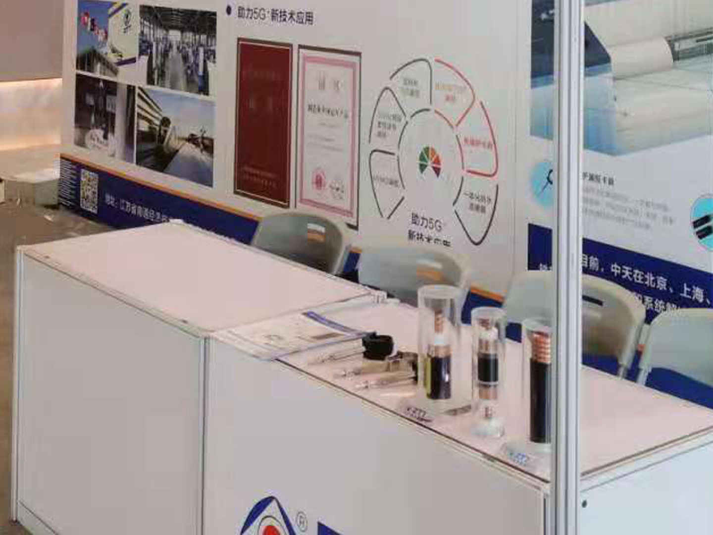 大会现场,德赢VWIN科技展示的低损耗5G漏缆、5GHz频段柔性波导漏缆以及免维护卡具,引得现场嘉宾纷纷驻足关注并询问产品详情。